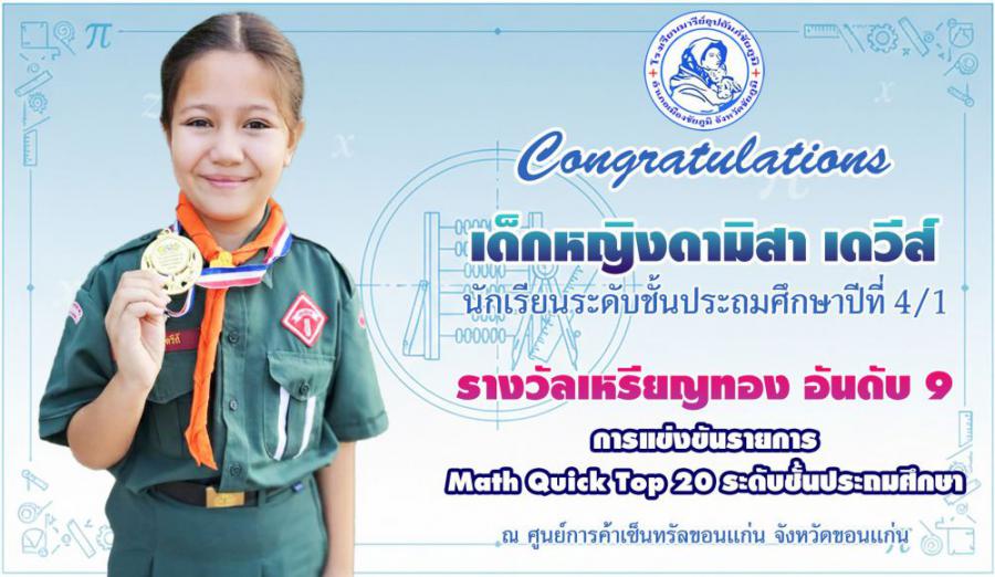 ขอแสดงความยินดีกับนักเรียนที่ได้รับรางวัล Top 20 การแข่งขันรายการ Math Quick ระดับชั้นประถมศึกษา มหกรรมการแข่งขันกีฬาวิชาการเพื่อการศึกษา รายการ VTEA THAI BINGO THAILAND CHAMPIONSHIP 2026 ระด้ับประเท
